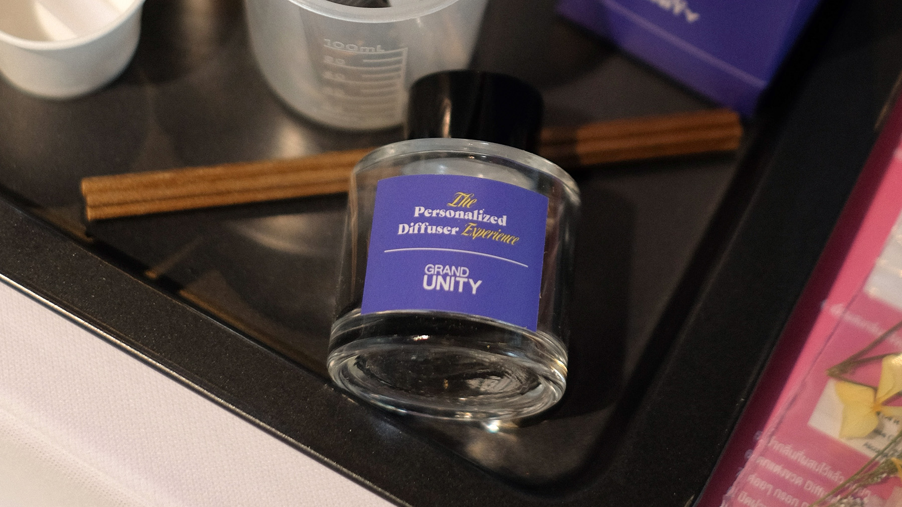 From the first day, we were contacted by the Grand Unity team to organise the upcoming room diffuser workshop. Previously, we had the opportunity to create a workshop at the ANIL Sathorn project once. However, we were so excited because we had to organise 4 Room Diffuser Workshops at the same time on the same day. At first, we were just wondering how the workshop should be like. After workshop schedule confirmation, we gradually planned, connected the possibilities and forms that should be. Shape up to become a Room Diffuser Workshop at selected projects of Grand Unity, such as the Denim and Blue projects, where the atmosphere in each location is unique and beautiful. We are happy to see the smiles, laughter, and enjoyment of all participants who intend to participate. There were completely fulfilled us.